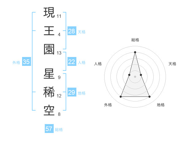 現王園 星稀空さんを姓名の画数から五運を鑑定