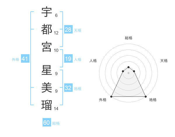 宇都宮 星美瑠さんの外格は41画の5点!