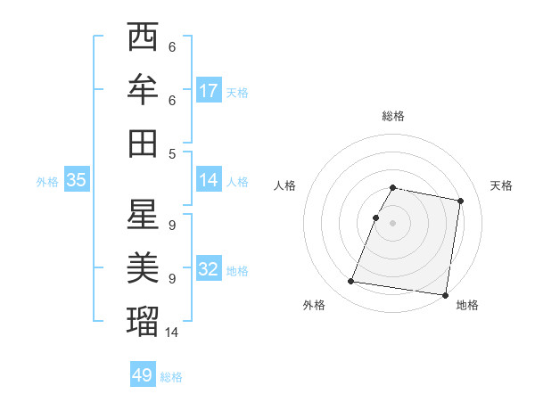 西牟田 星美瑠さんを姓名の画数から五運を鑑定
