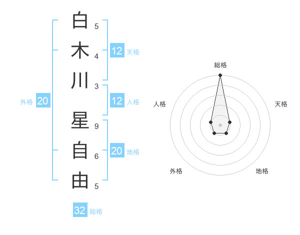 白木川 星自由さんを姓名の画数から五運を鑑定