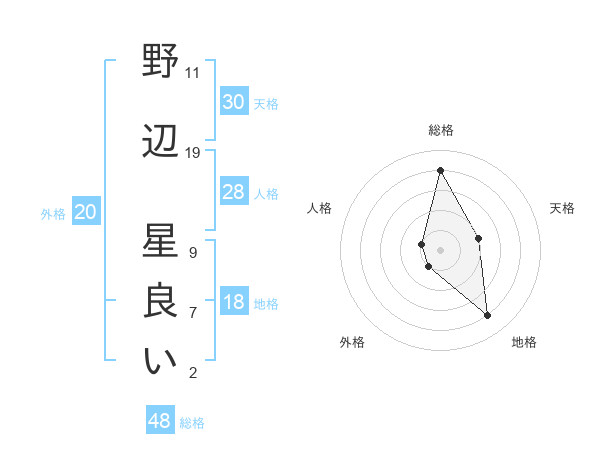 野辺 星良いさんの天格は30画の2点!