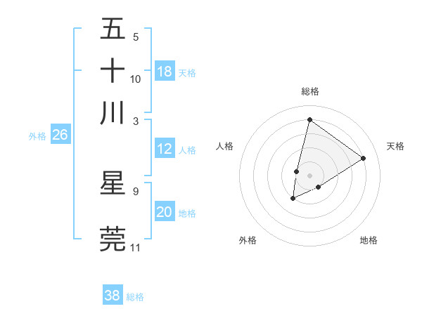 五十川 星莞さんを姓名の画数から五運を鑑定