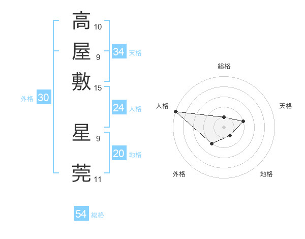 高屋敷 星莞さんを姓名の画数から五運を鑑定