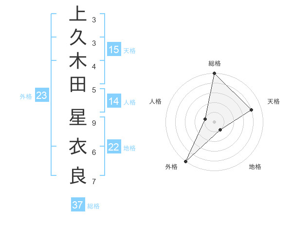 上久木田 星衣良さんを姓名の画数から五運を鑑定
