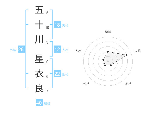 五十川 星衣良さんを姓名の画数から五運を鑑定