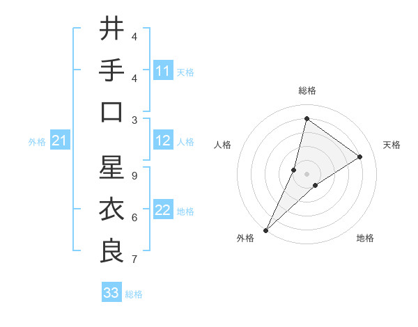 井手口 星衣良さんの総格は33画の4点!