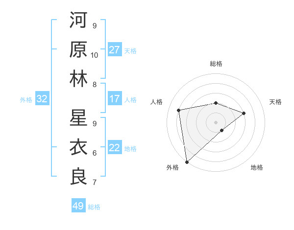 河原林 星衣良さんを姓名の画数から五運を鑑定