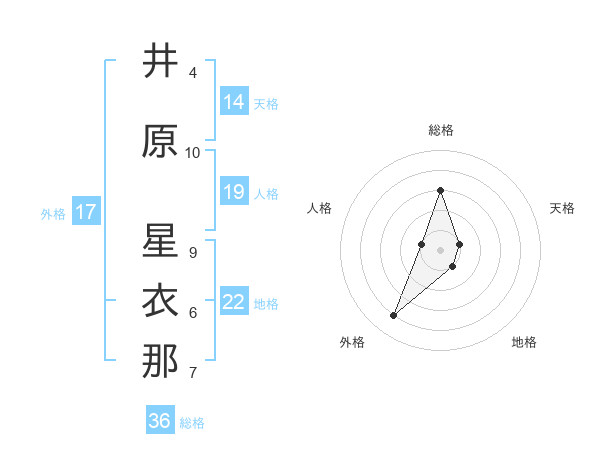 井原 星衣那さんを姓名の画数から五運を鑑定