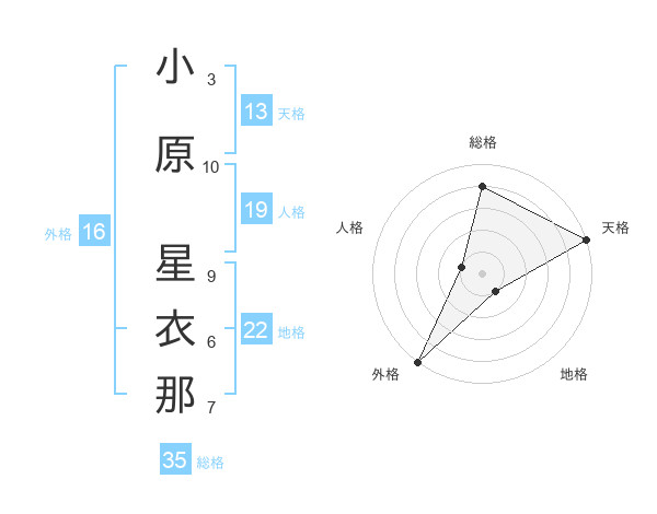 小原 星衣那さんの天格は13画の5点!