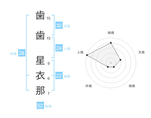 歯歯 星衣那さんの総格は52画の4点!