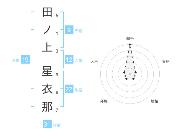 田ノ上 星衣那さんを姓名の画数から五運を鑑定