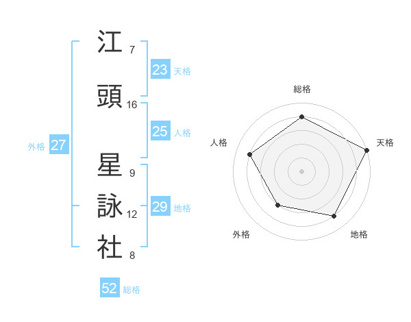 江頭 星詠社さんを姓名の画数から五運を鑑定