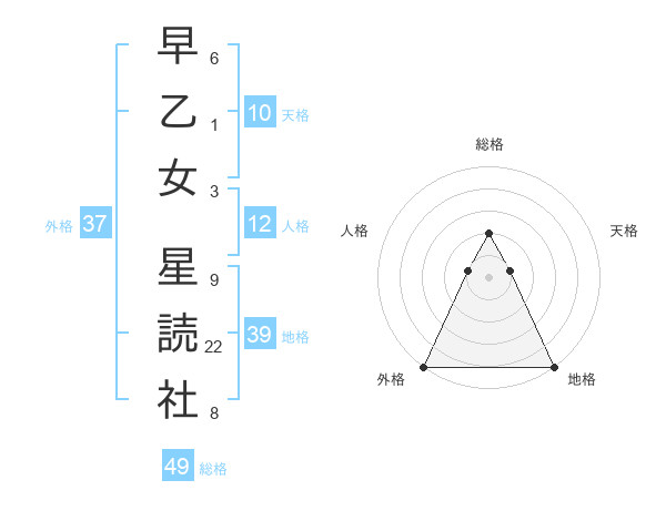 早乙女 星読社さんの総格は49画の2点!
