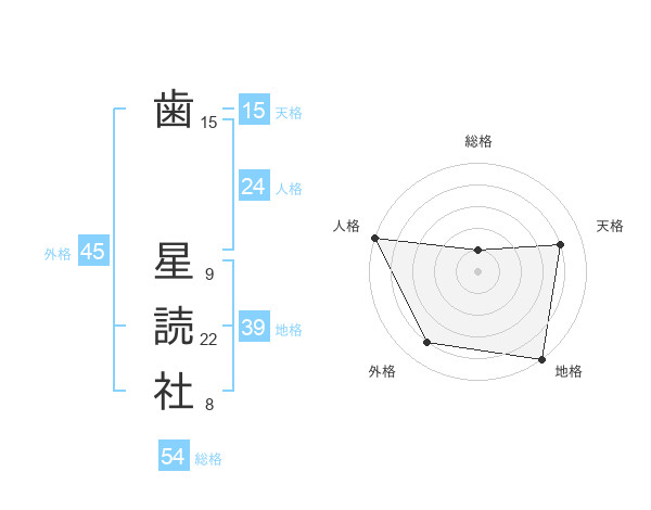 歯 星読社さんの外格は45画の4点!