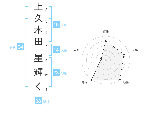 上久木田 星輝くさんの総格は38画の4点!