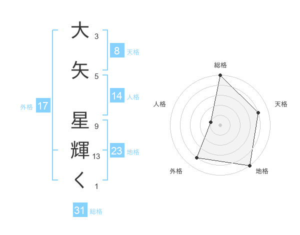 大矢 星輝くさんを姓名の画数から五運を鑑定