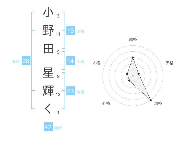 小野田 星輝くさんを姓名の画数から五運を鑑定