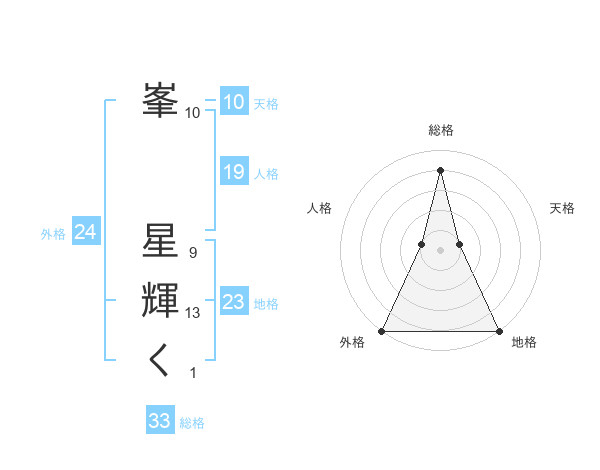 峯 星輝くさんを姓名の画数から五運を鑑定
