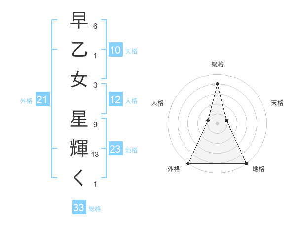 早乙女 星輝くさんを姓名の画数から五運を鑑定