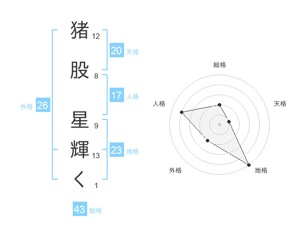 猪股 星輝くさんを姓名の画数から五運を鑑定