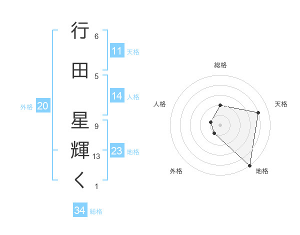 行田 星輝くさんの総格は34画の2点