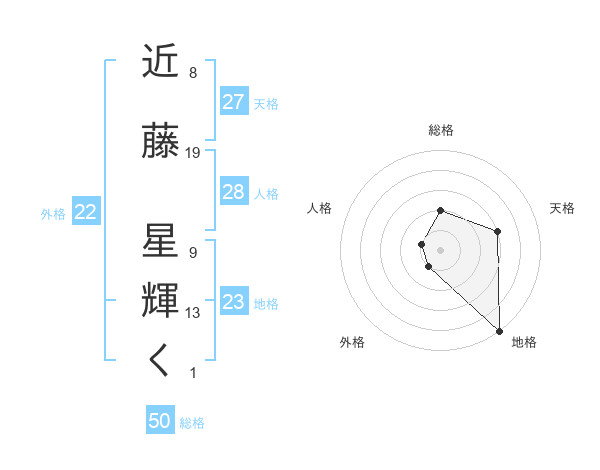 近藤 星輝くさんを姓名の画数から五運を鑑定