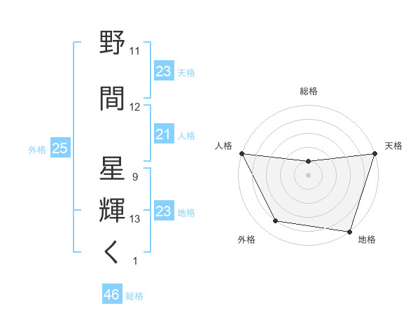 野間 星輝くさんを姓名の画数から五運を鑑定