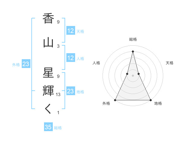 香山 星輝くさんを姓名の画数から五運を鑑定