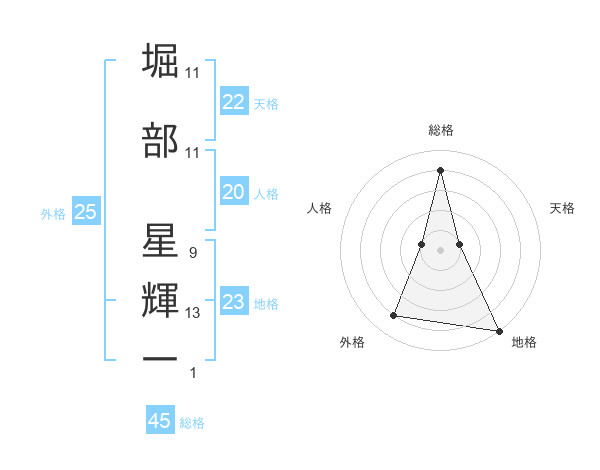 堀部 星輝一さんの総格は45画の4点!