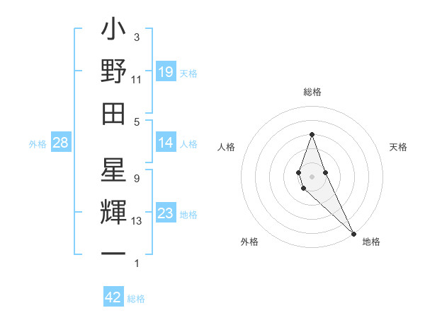 小野田 星輝一さんを姓名の画数から五運を鑑定