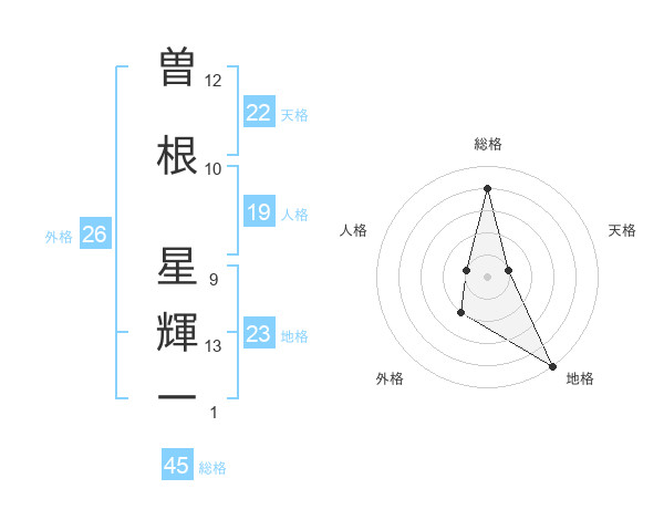 曽根 星輝一さんを姓名の画数から五運を鑑定