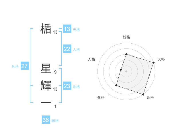 楯 星輝一さんの天格は13画の5点!