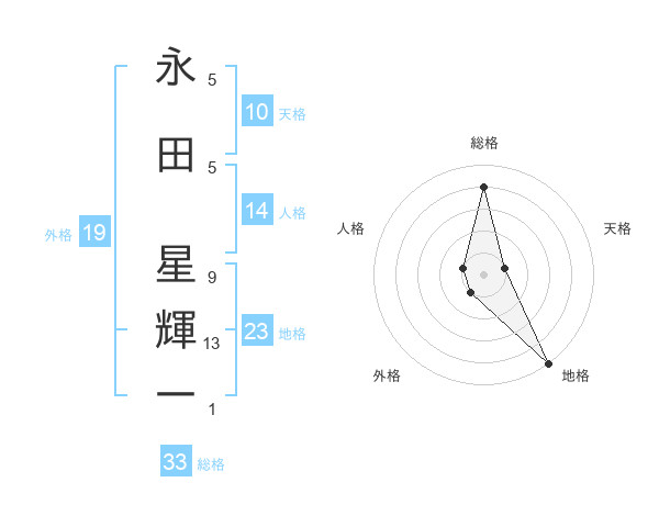永田 星輝一さんの総格は33画の4点!
