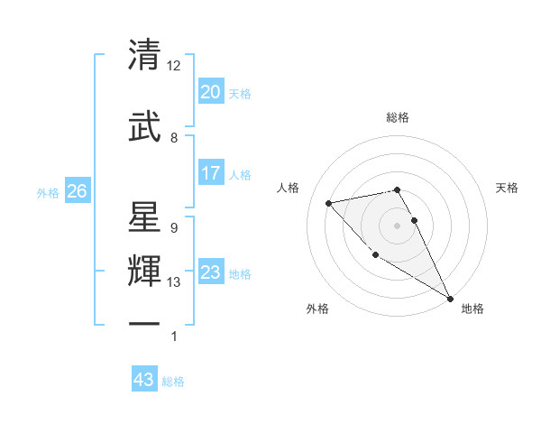 清武 星輝一さんの天格は20画の1点!