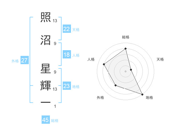 照沼 星輝一さんを姓名の画数から五運を鑑定