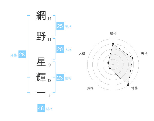 網野 星輝一さんを姓名の画数から五運を鑑定