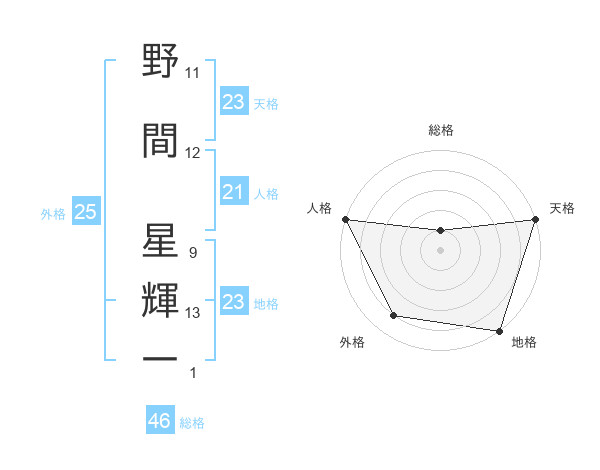 野間 星輝一さんを姓名の画数から五運を鑑定