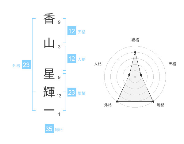 香山 星輝一さんを姓名の画数から五運を鑑定