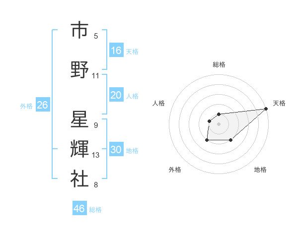 市野 星輝社さんを姓名の画数から五運を鑑定