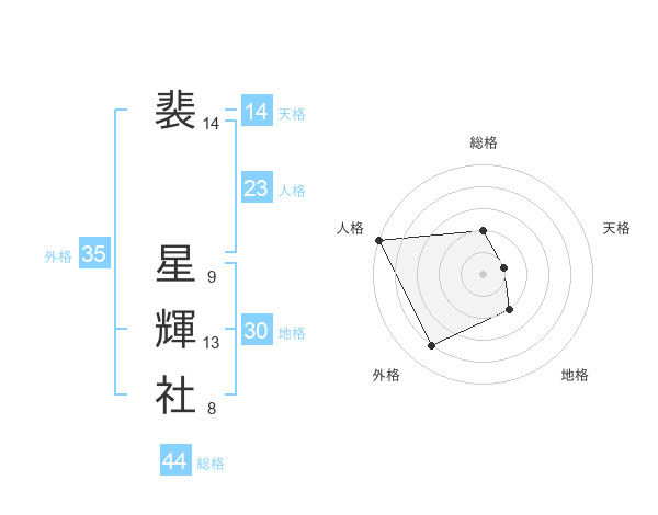 裴 星輝社さんを姓名の画数から五運を鑑定