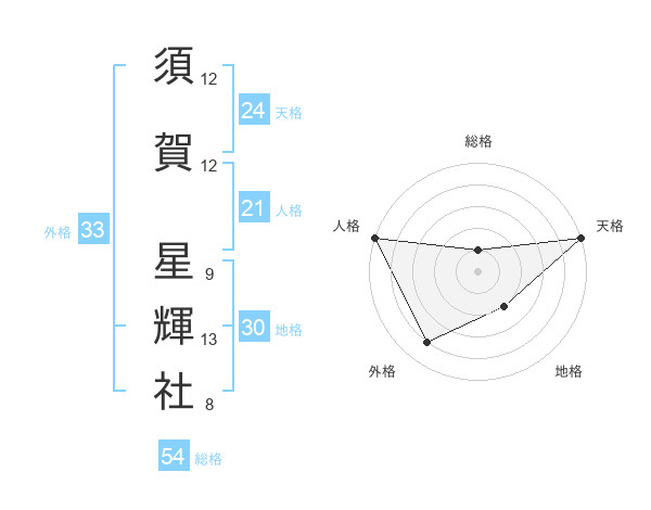 須賀 星輝社さんの総格は54画の1点