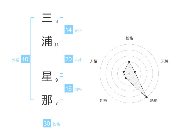 三浦 星那さんの総格は30画の2点!