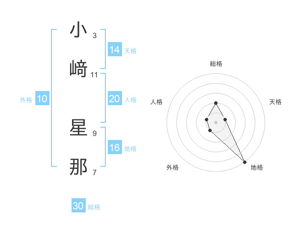 小﨑 星那さんの総格は30画の2点!