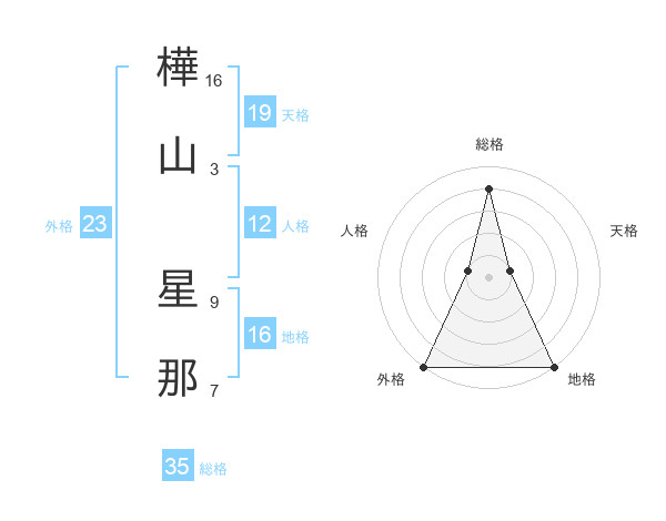 樺山 星那さんの総格は35画の4点!