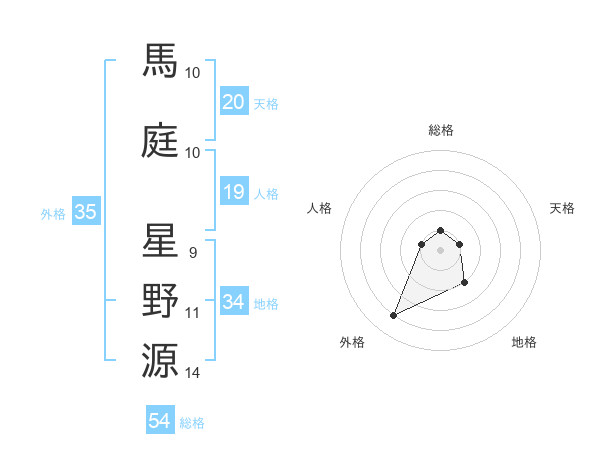 馬庭 星野源さんの外格は35画の4点!