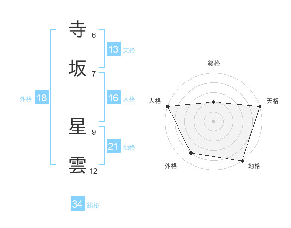 寺坂 星雲さんを姓名の画数から五運を鑑定