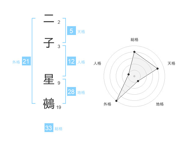 二子 星鵺さんの天格は5画の4点!