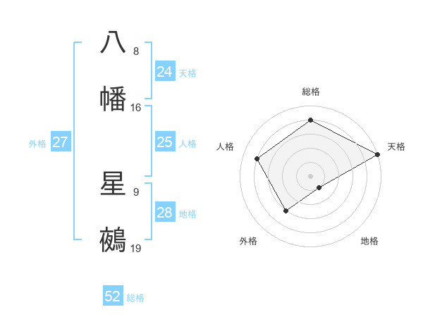 八幡 星鵺さんの総格は52画の4点!