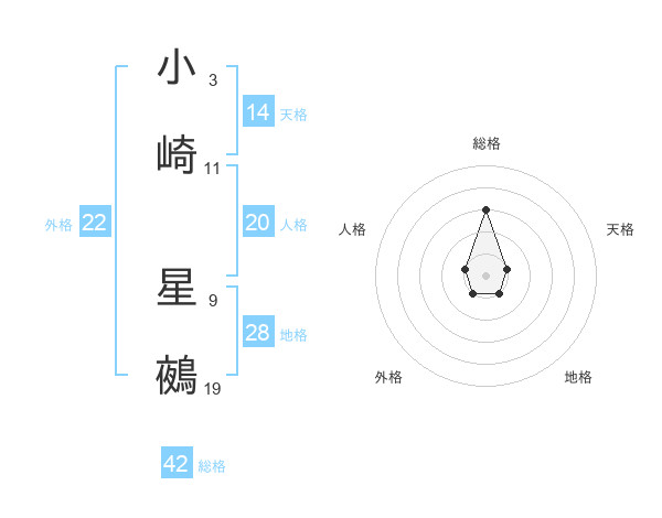 小崎 星鵺さんの総格は42画の3点!