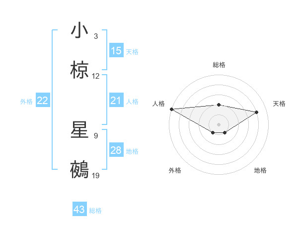 小椋 星鵺さんを姓名の画数から五運を鑑定